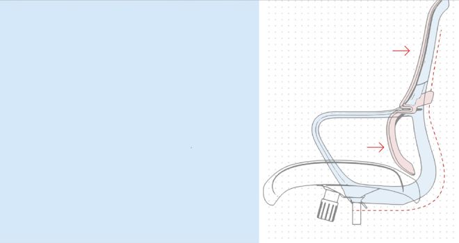 Sedile e schienale sincronizzati forniscono un supporto adeguato alla zona lombare e alla schiena.