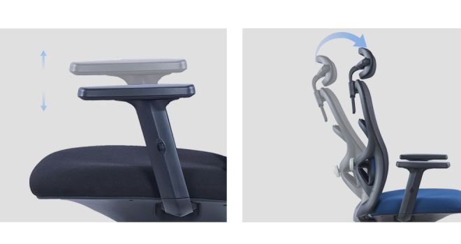 Braccioli in PU regolabili in altezza, meccanismo a blocco singolo per inclinazione separata