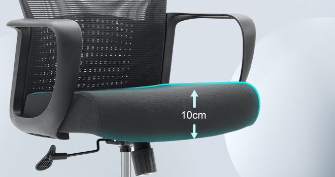 | Regolazione dell'altezza del sedile | Schiuma stampata da 10 cm per il cuscino del sedile, alzata a gas nera di lunghezza estesa 100 mm | / | ||
