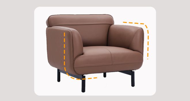 Il contorno esterno è trattato con ampi angoli arrotondati e il lato esterno del bracciolo è trattato con bordi smussati.