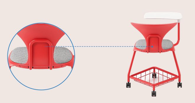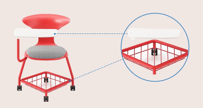 | Tavoletta da scrittura | Ampia lavagna girevole a 40° rinforzata con fibra PA, spostabile da sinistra a destra; il supporto metallico rinforzato fornisce una superficie di appoggio stabile. | ||||